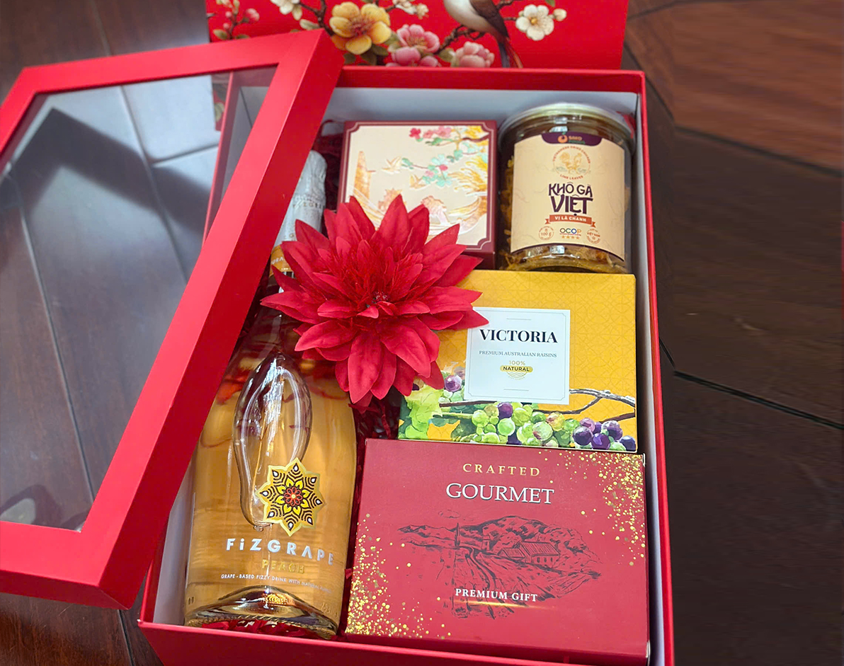 • 01 Hộp quà tết size 29*36 bọc kính & phụ kiện & túi